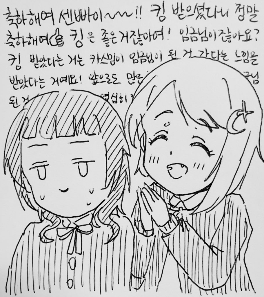 👏👏👏👏축하해여 센빠이!~ 킹 받으셨다니 정말 축하해여 👍 킹은 좋은 거잖아요! 임금님이잖아요? 킹 받았다는 거는 카스밍이 임금님이 된 것 같다는 느낌을 받았다는 거예요! 앞으로도 많은 분들이 킹👑받게 되면 카스밍이 임금님 된 것 같다는 느~낌을 갖게 해주는 영상을 열심히 찍어올릴게여💛💛